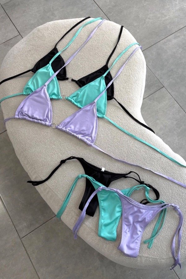 Bikini triangulito con detalle de argollita en medio + tacitas desmontables