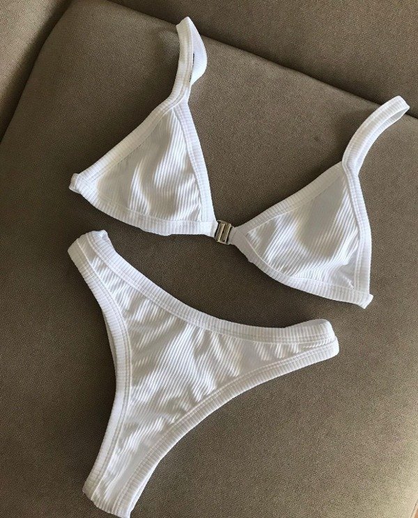 Con broche en medio del busto y tiras para atar, para lograr la armonia perfecto entre comodidad, buen agarre y efecto push up.